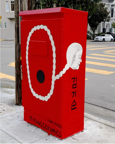 On a crisp morning in the Mission District, the utilitarian metal boxes that line 22nd and Dolores have been reborn as vivid crimson canvases, their surfaces imprinted with the sinuous silhouettes of onggis: Korean earthenware vessels that bear the weight of centuries of domestic ritual. At the center of this transformation is Jane Kang, a Korean-American interdisciplinary artist whose public murals and intimate studio ceramics weave together threads of cultural memory, personal lineage, and collective resilience.