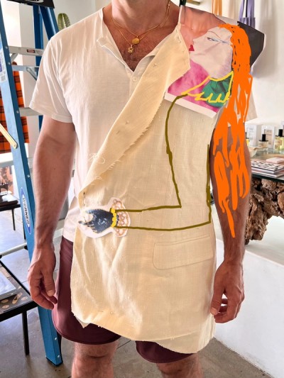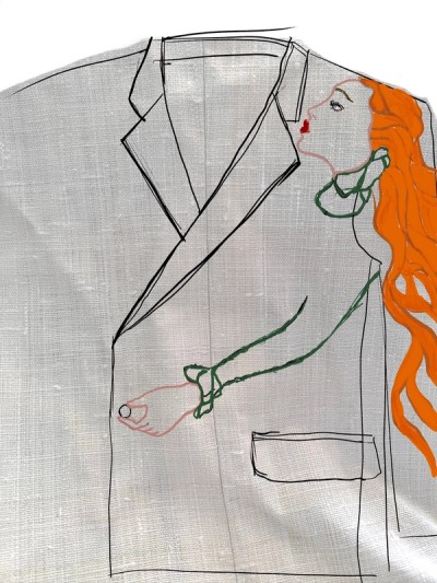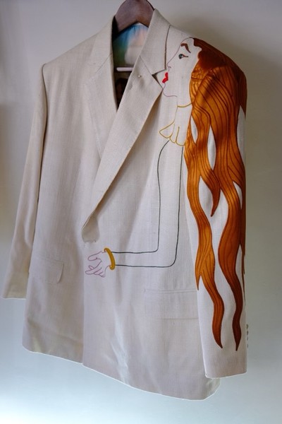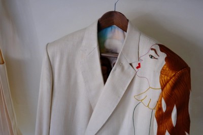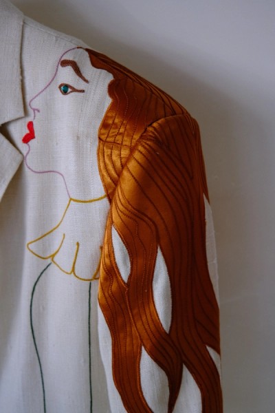 A bespoke dupionni silk hand-embroidered suit jacket in ivory, inspired by Vivetta S/S '17, Schiaparelli, and Jean Cocteau.